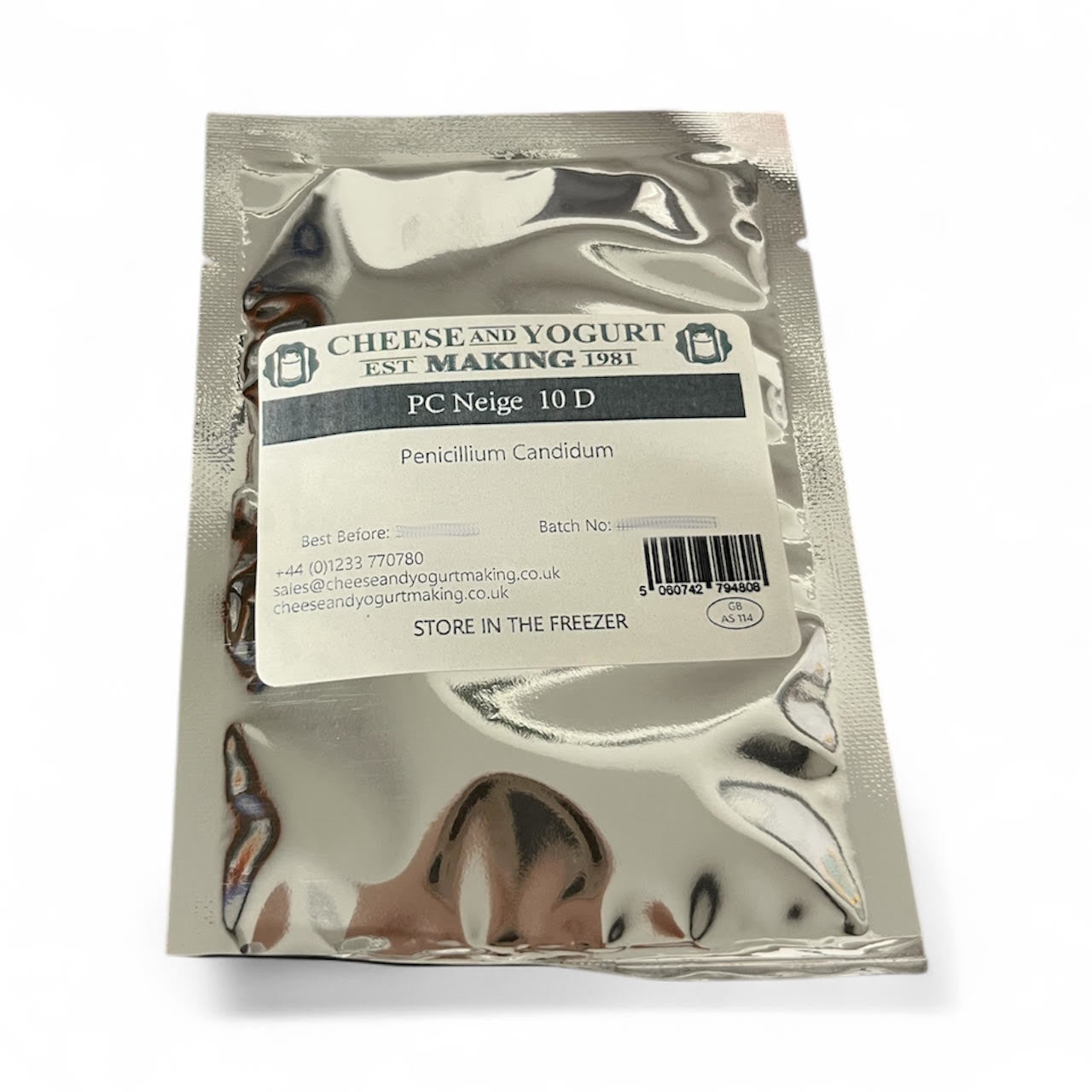 The mould powder is presented in a sterile pack, containing enough monocultured P. Candidum to process 250-300 litres of milk. It is used in the production of Brie and Camembert and for the production of the white mould on surface ripened cheeses.